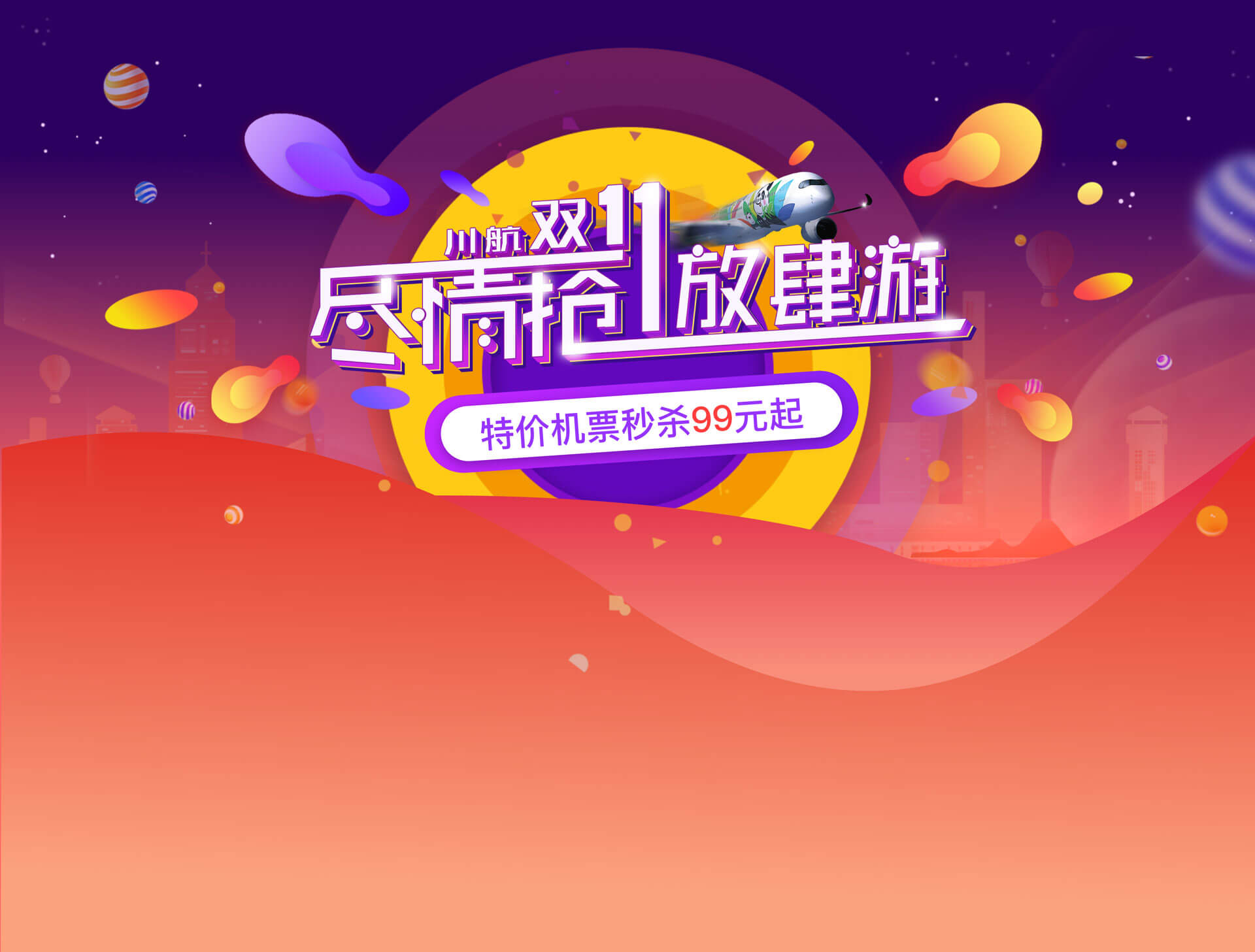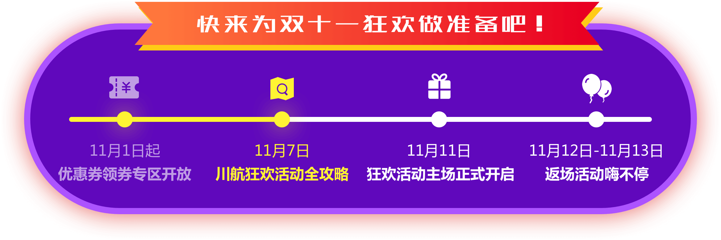 即可领取川航双十一狂欢节主场及返场优惠券最高满减200元