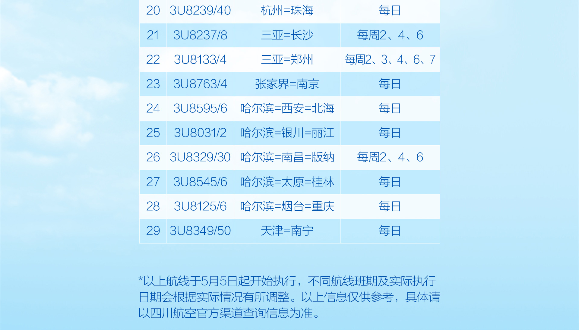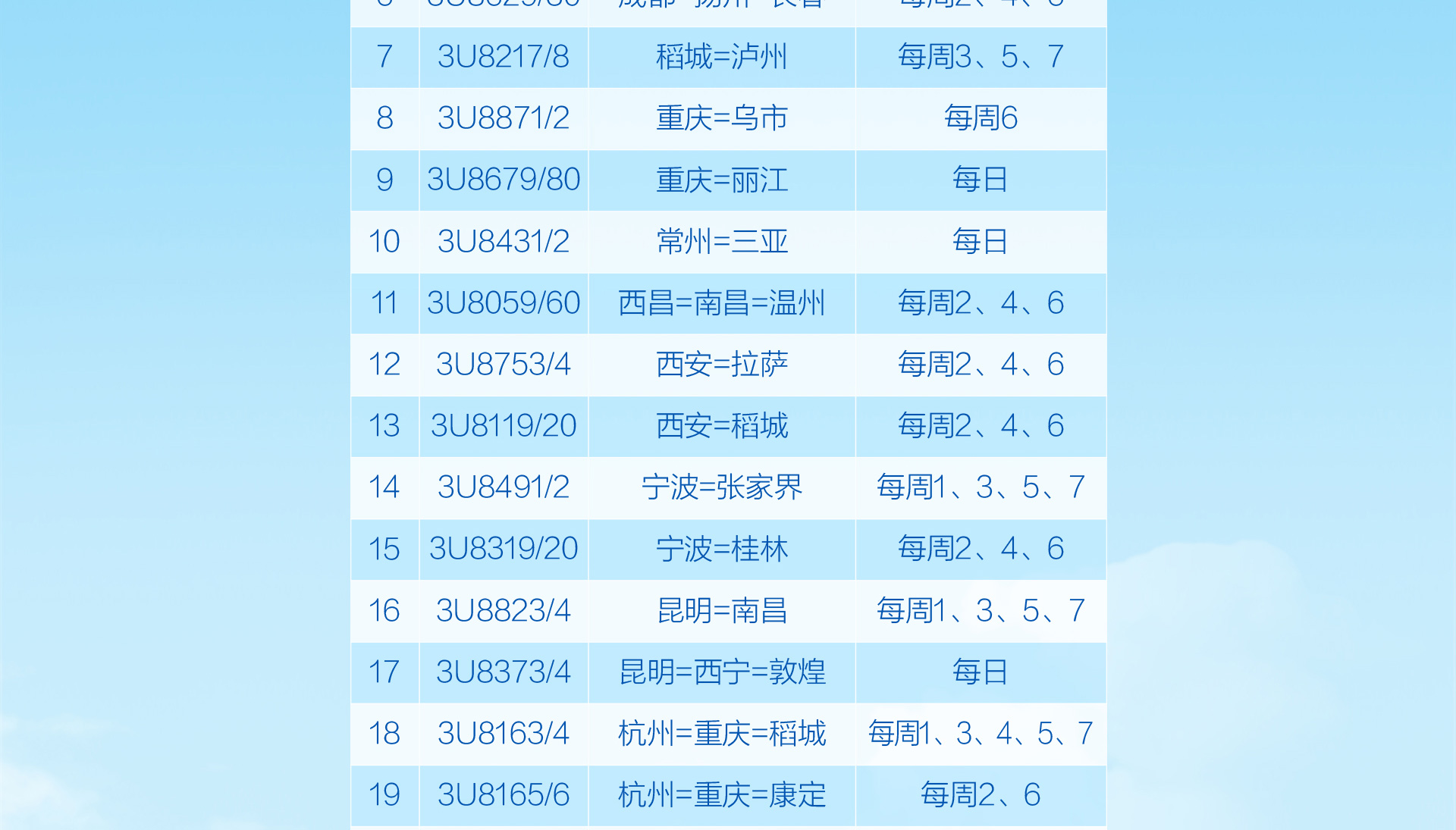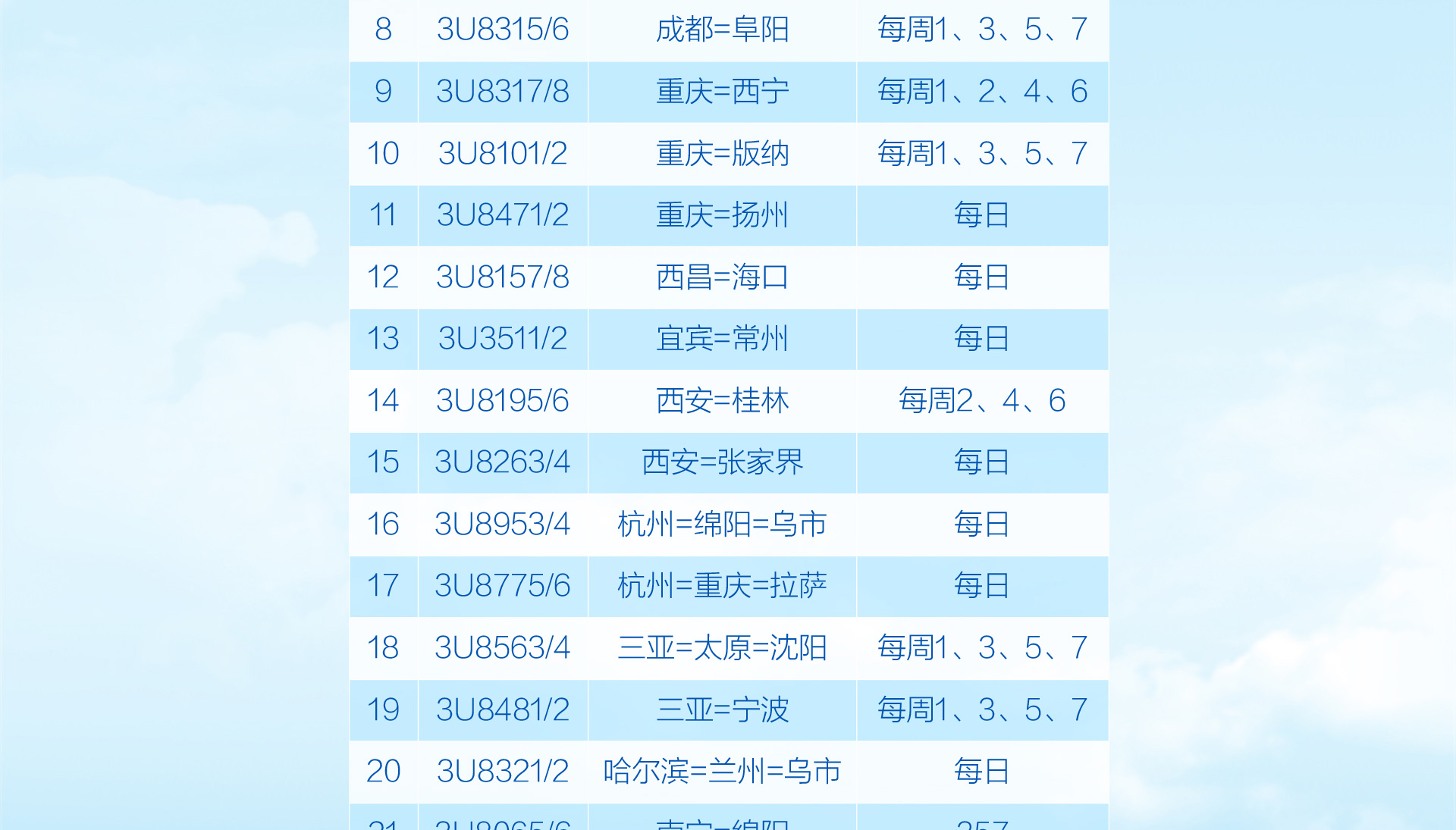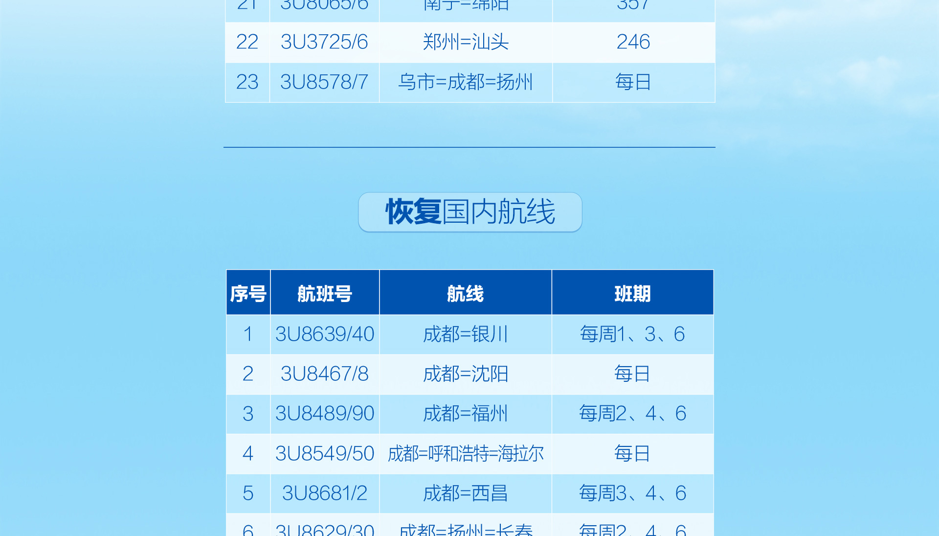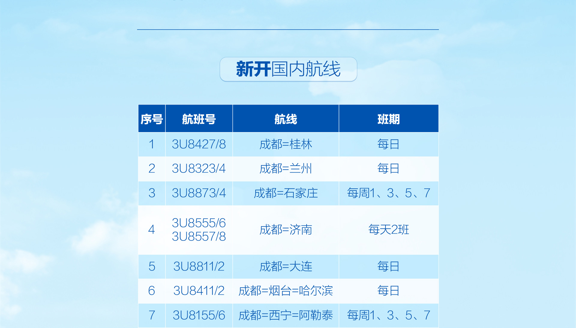 川航“金熊猫一票通”客票互换航程规则